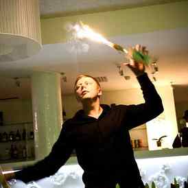 Профессиональный бармен, работая как за баром, так и за столами, с необыкновенным мастерством приготовит ваш любимый коктейль любой сложности. В процессе бармен-шоу бармены демонстрируют оригинальную подачу всевозможных коктейлей с использованием огня и фейерверков. Приготовление коктейлей из четко отработанных движений на глазах у зрителей превращается в фантастическое шоу, захватывающее дух.